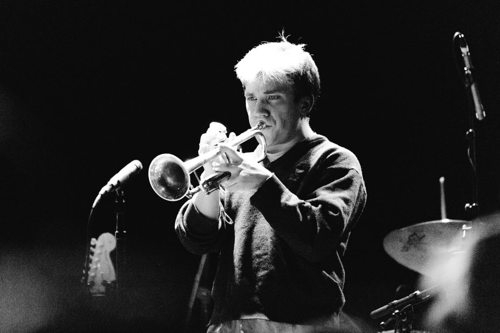 Callum Roberts (Trumpet, Guitar): I find that I get to do two pretty opposite things. I only ever started playing guitar for shits without any training because I had a lip injury when I was 17 and I couldn’t play trumpet. When I’m playing trumpet I’m typically trying to be very delicate because in contrast the saxophone is quite abrasive. And then the guitar is very cathartic. When I play loud and aggressively it’s all vibes. It’s very intentionally dumbed down.